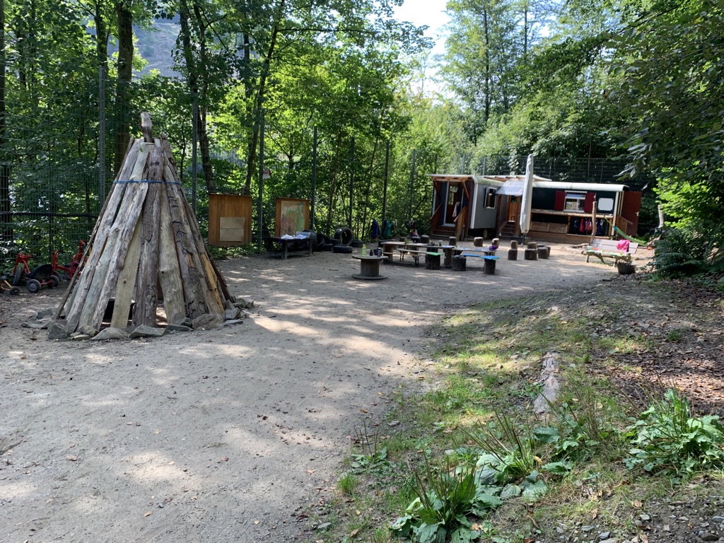 Nur wenige Schritte entfernt befindet sich unsere Waldgruppe für Kinder im Alter von 3 bis 6 Jahren. Auf einem großen Platz mit Bauwagen und Schutzraum in der ehemaligen Grundschule am Knerling entfalten 20 Kinder ihre Talente in der freien Natur.