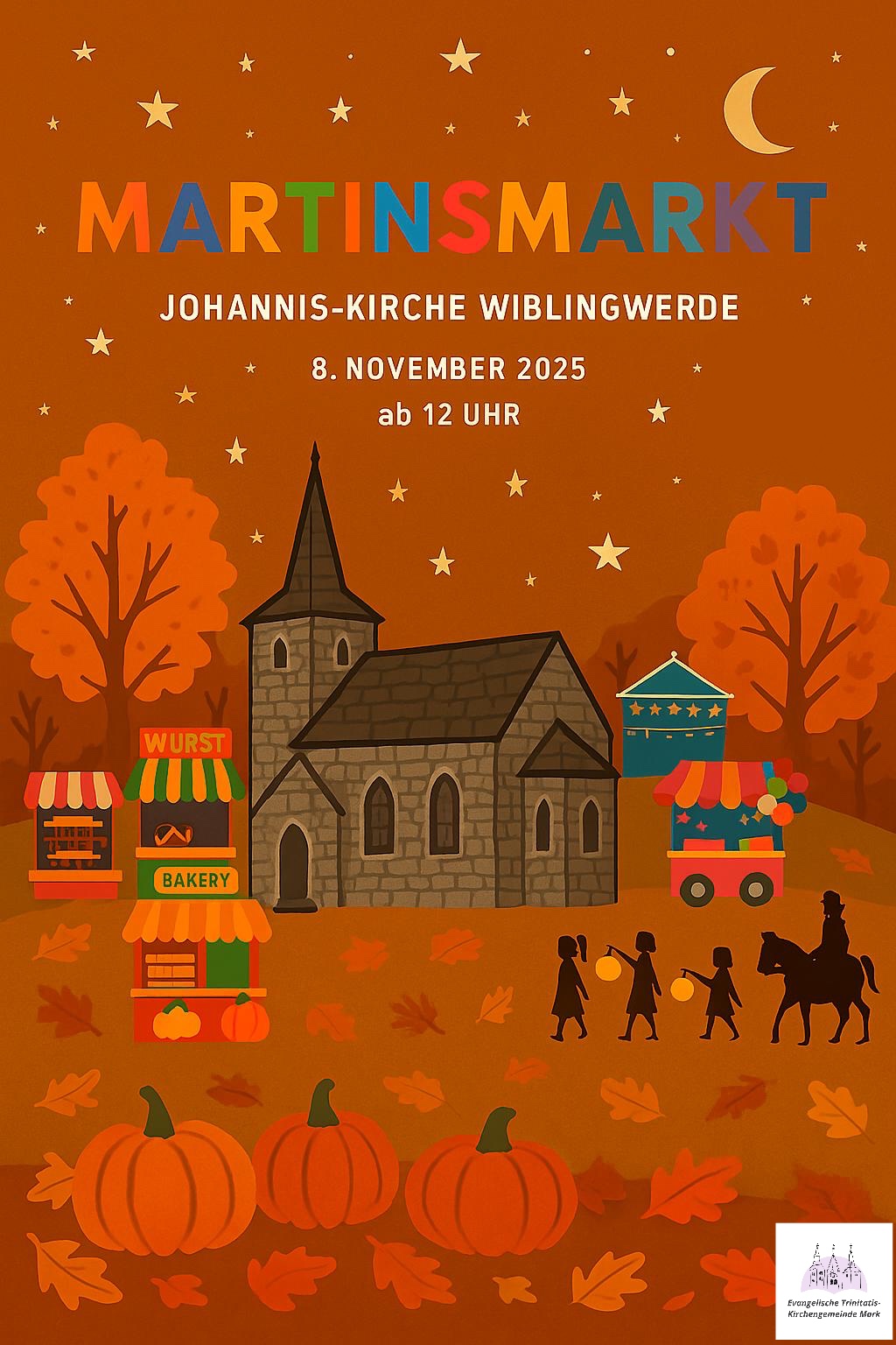 Am 8. November lädt die Evangelische Trinitatis-Kirchengemeinde Mark herzlich zum traditionellen Martinsmarkt rund um die Johannis-Kirche in Wiblingwerde ein. Besucherinnen und Besucher dürfen sich auf eine stimmungsvolle Atmosphäre voller Kreativität, Genuss und regionaler Produkte freuen.