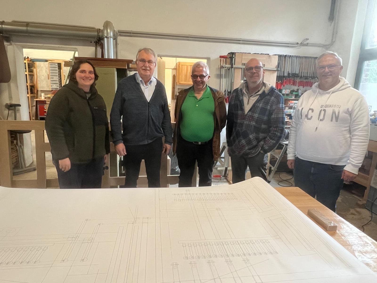 Um sich ein genaueres Bild vom aktuellen Stand zu machen, besuchte eine kleine Delegation unserer Gemeinde Herrn Wiggering in seiner Orgelwerkstatt in Köln. Dort nahm er sich viel Zeit, um die bereits gefertigten Bauteile zu zeigen und die nächsten geplanten Arbeitsschritte zu erläutern. Der Besuch machte eindrucksvoll deutlich, wie komplex und fein abgestimmt der Bau einer Orgel ist.